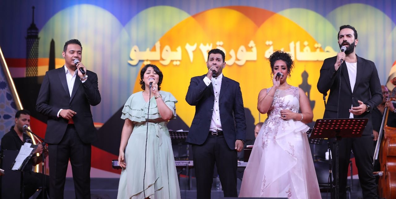 وقد أحيا الحفل كوكبة من المطربات والمطربين من نجوم مسابقة “أنا المصرى” وهم “أميرة رضا، منار الشاذلي، مؤمن خليل، أحمد شرف، ومحمد سراج”، بمصاحبة الفرقة الموسيقية تحت إشراف الفنان حاتم عزت، وعاش جمهور الحفل مع باقة من أشهر الأغانى الوطنية التي أثرت وجدان المستمع المصري والعربي، منها “بالأحضان، أم الدنيا، صورة، لأنك عظيمة، بلدى التاريخ، ع الدوار، يا مصر، وحشانى بلادى، دى مصر”، واختتم الحفل بأغنية “اسلمى يا مصر ” .