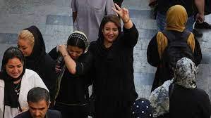 فيما بدت معظمهن بلا حجاب، في حركة اعتراض صارخة على القوانين الصارمة المفروضة منذ سنوات على النساء ومظهرهن في البلاد.