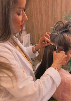 الاكستنشن هو ترتيب الشعر الدائم و له أنواع كثيرة فيه نوع الأشكر وفيه نوع الدنق وفيه الخياطة ..والذي جعلني منذ نعومة أظفاري يأني كنت أرى في التلفزيون وأنا كنت مغرمة جداً بالشعر الطويل وحينما سافرت وتحديداً إلى فرنسا تقابلت مع خبير أجنبي في تركيب الشَعر وتعلمت منه تكنيكات بسيطة و بعدها وجدت ذاتي أغوص في هذا المجال وسافرت لبنان وسافرت مصر مع الشهير أحمد الصُغير واستفدت كثير جداً جداً … وبعدها أنا في السعودية قدمت أكثر من (كورس) تدريبي لتعليم تركيب توصيلات الشَعر