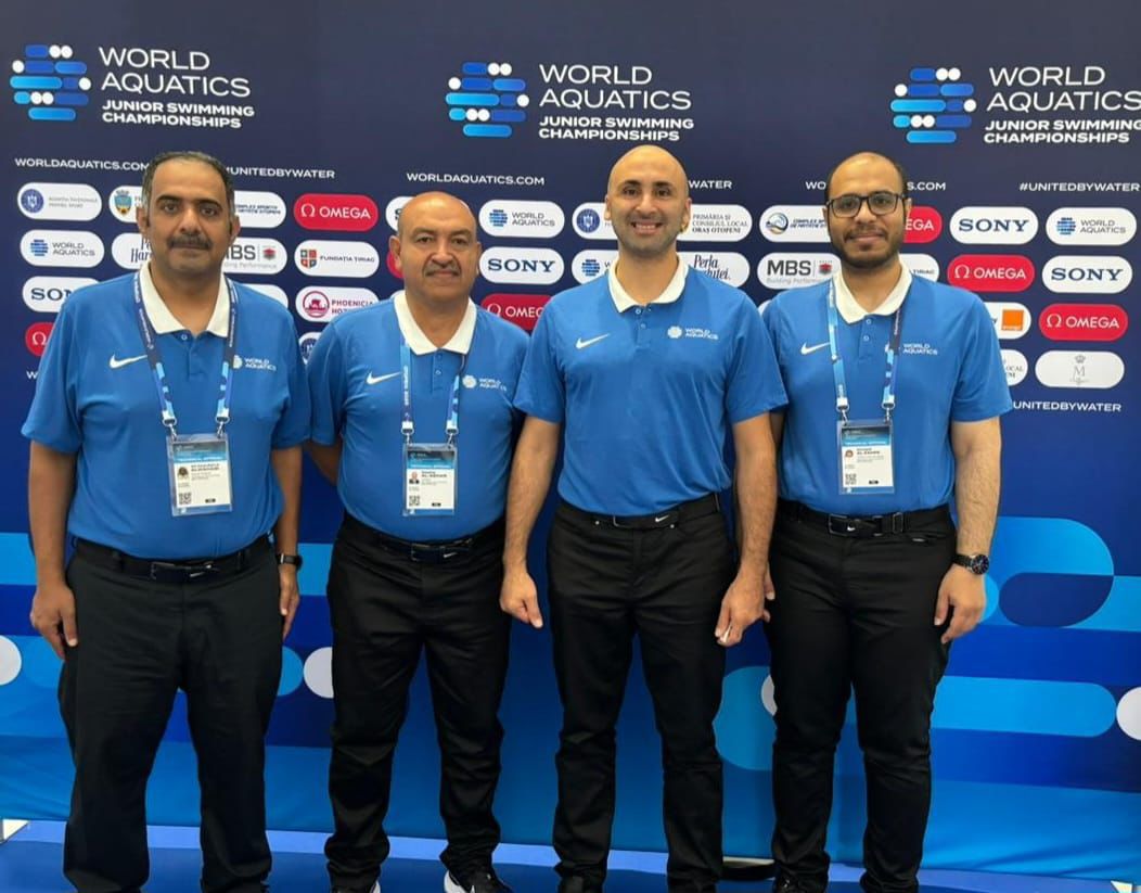 يواصل أربعة من الحكام العرب الدوليين تألقهم في المحافل العالمية، حيث يشاركون في إدارة منافسات بطولة العالم للناشئين للسباحة، والمقامة حاليًا في رومانيا.