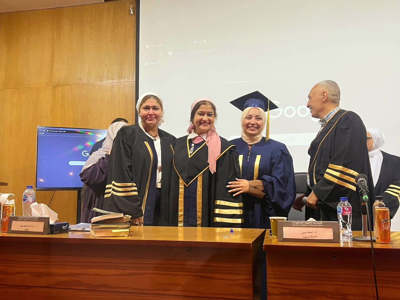 وجاءت مناقشة الباحثة ثرية ومثمرة فإجابات الباحثة تنم عن نضج أدبي نقدي وتحليلي وإتقان في استخدام أدوات النظريات المتبناة في التحليل الدقيق، واستوفت الرسالة جميع عناصر البحث العلمي وأشادت اللجنة برسالة الباحثة وأصالة موضوعها ومراجعها الحديثة بالإضافة إلى تمكن الباحثة من تربيط العديد من الأبعاد النظرية بسلاسة وإحكام.