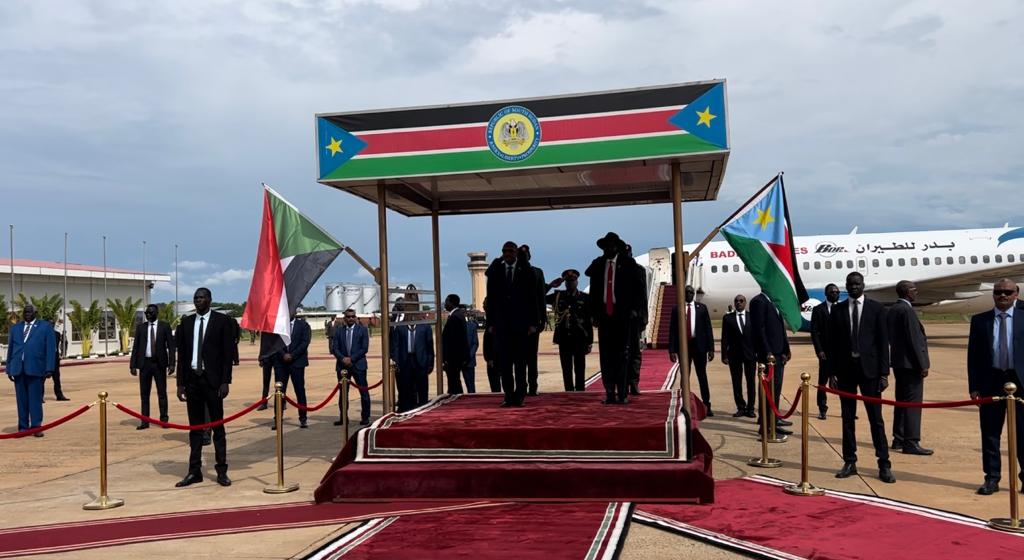 وكان في إستقباله بمطار جوبا الدولي الرئيس سلفاكير ميارديت، وأعضاء البعثة السودانية لدى جمهورية جنوب السودان،وأجريت مراسم استقبال رسمية لرئيس مجلس السيادة.
