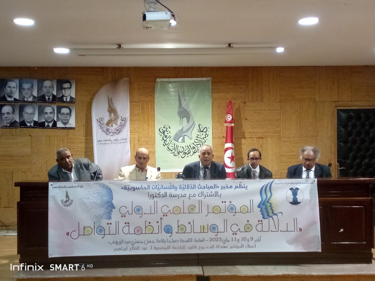انطلقت صباح أمس الثلاثاء التاسع من مايو 2023 أعمال المؤتمر العلمي الدولي حول ” الدلالة في الوسائط وأنظمة التواصل” ويستمر إلى 11 مايو 2023 بقاعة حسن حسني عبدالوهاب بكلية الآداب والفنون والإنسانيات بجامعة منُّوبة؛ بتنظيم من مخبر ” المباحث الدلالية واللسانيات الحاسوبية” بالاشتراك مع مدرسة الدكتورا؛