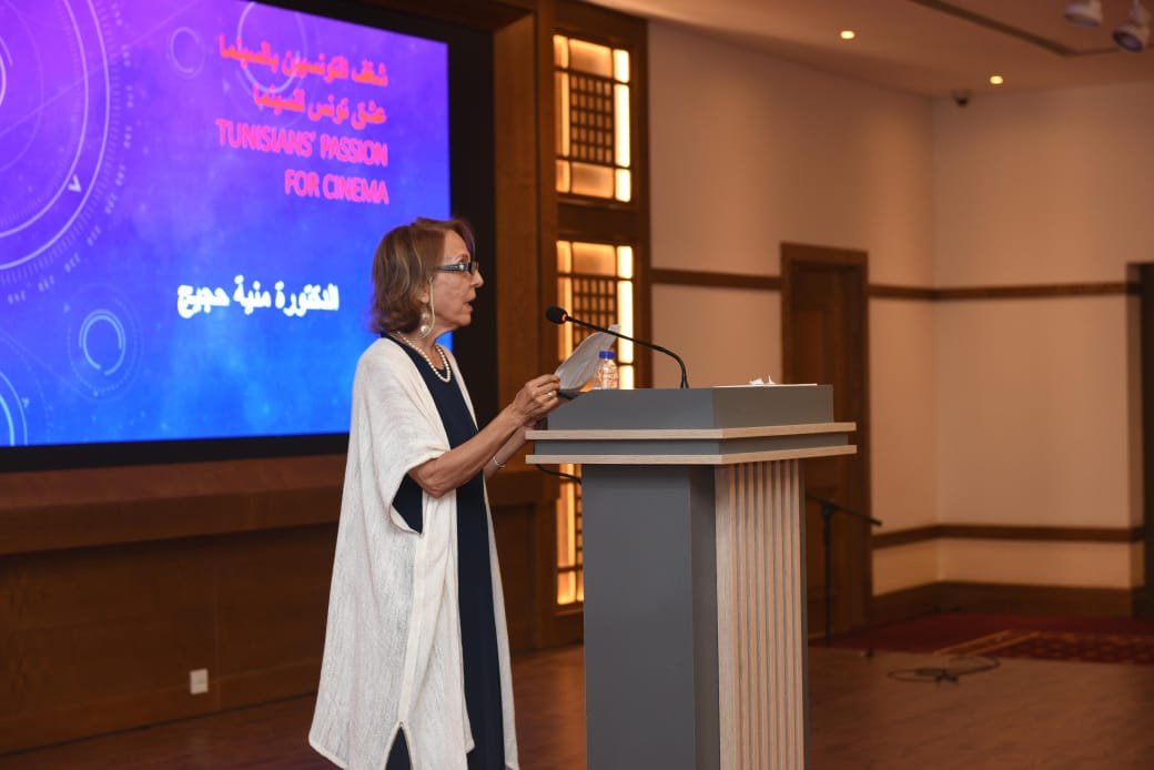 وتخلل الحفل فقرة موسيقية لاقت استحسان الحضور يليه قدمت الدكتورة منيرة حجيج ورقة عمل بعنوان “ضوء على السينما التونسية”