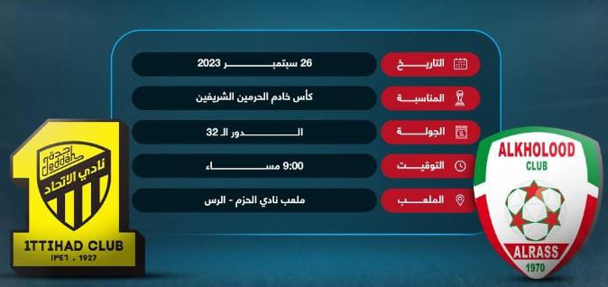 يحل الفريق الأول لكرة القدم بنادي الاتحاد اليوم الثلاثاء ضيفاً على الخلود وذلك ضمن مباريات دور الـ32 من كأس خادم الحرمين الشريفين.
