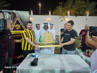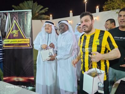 وعقب المباراة كرم رئيس رابطة لاعبي ومحبي الاتحاد الدكتور محمد السليمان، وراعي المباراة الكابتن سعيد غراب، والكابتن جمال فرحان الفريقين وعددا من الضيوف.