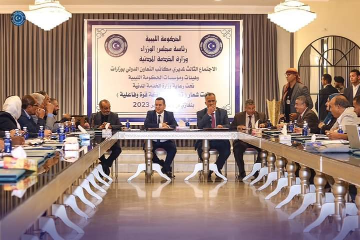 الليبية د.عبدالهادي الحويج الأجتماع الثالث لمدراء الأدارات ومكاتب التعاون الدولي بالوزارت والهيئات والمؤسسات بالحكومة الليبية باستضافة من وزارة الخدمة المدنية بالحكومة الليبية تحت شعار (تعاون وشراكة قوة وفاعلية)