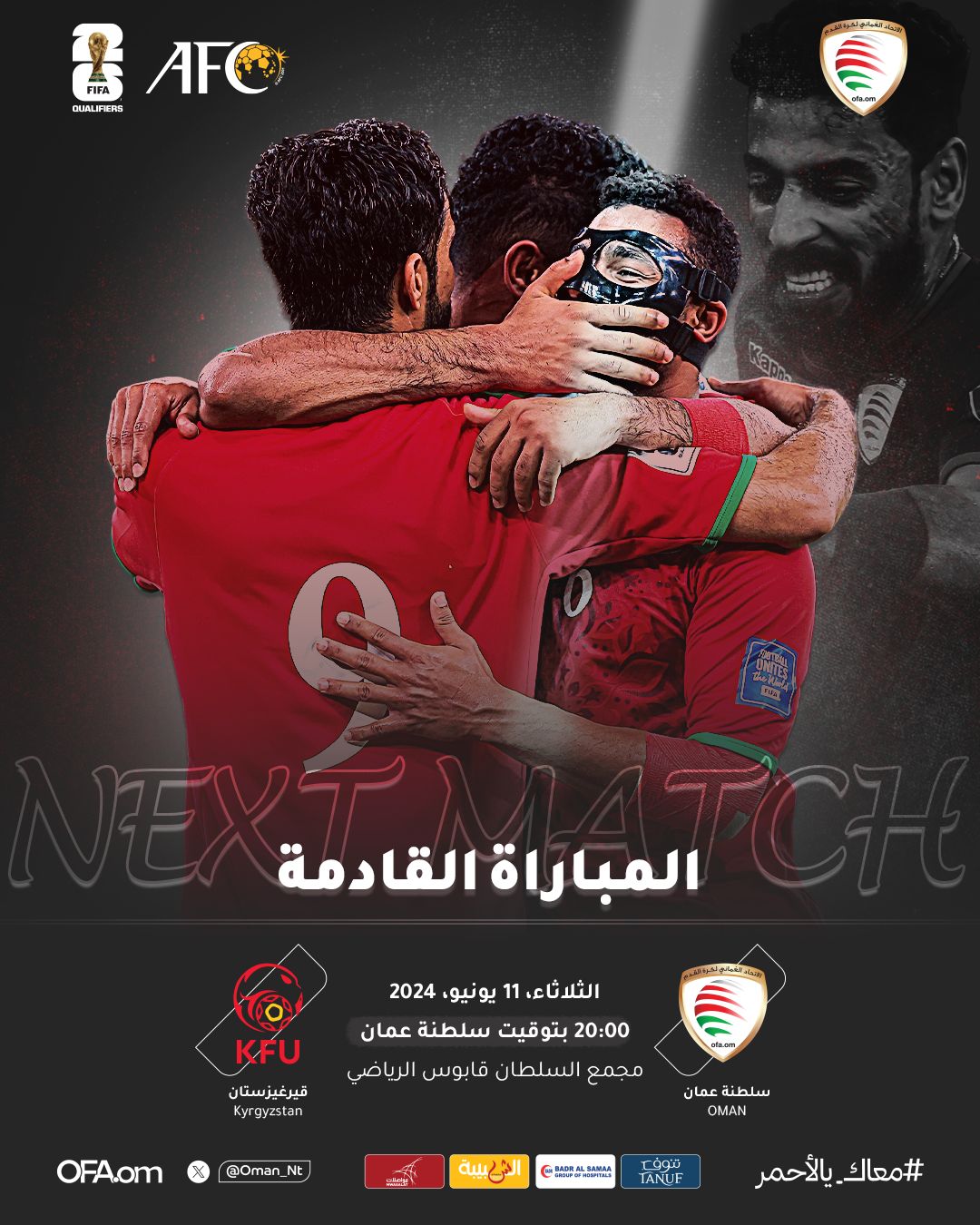 يذكر أن مباراة المنتخب العماني أمام نظيره منتخب قيرغيزستان سوف تقام مساء يوم الثلاثاء عند الساعة الثامنة على أرضية مجمع السلطان قابوس الرياضي بيوشر.