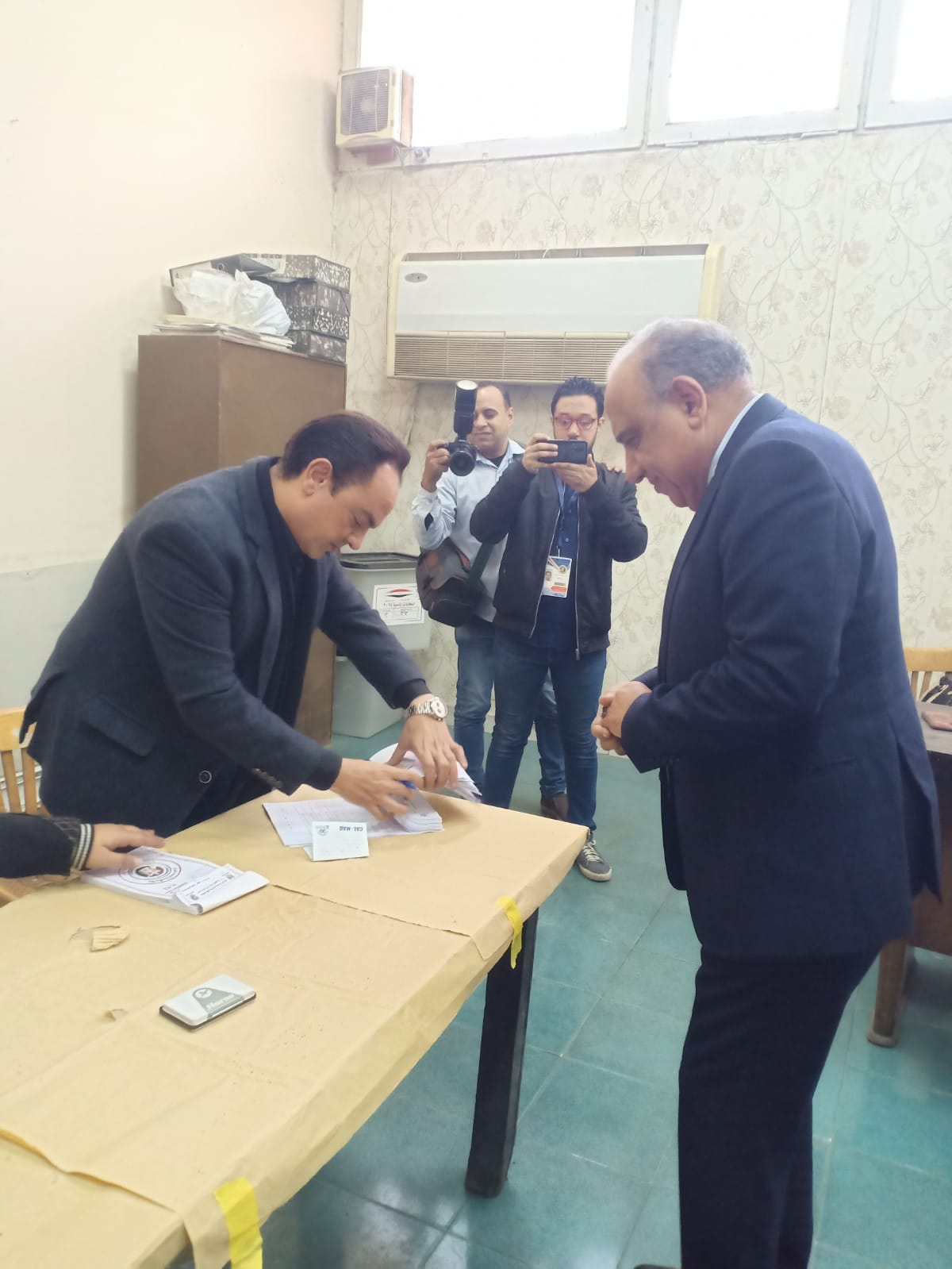 وزير قطاع الاعمال يدلي بصوته بالجامعه العمالية مدينة نصر