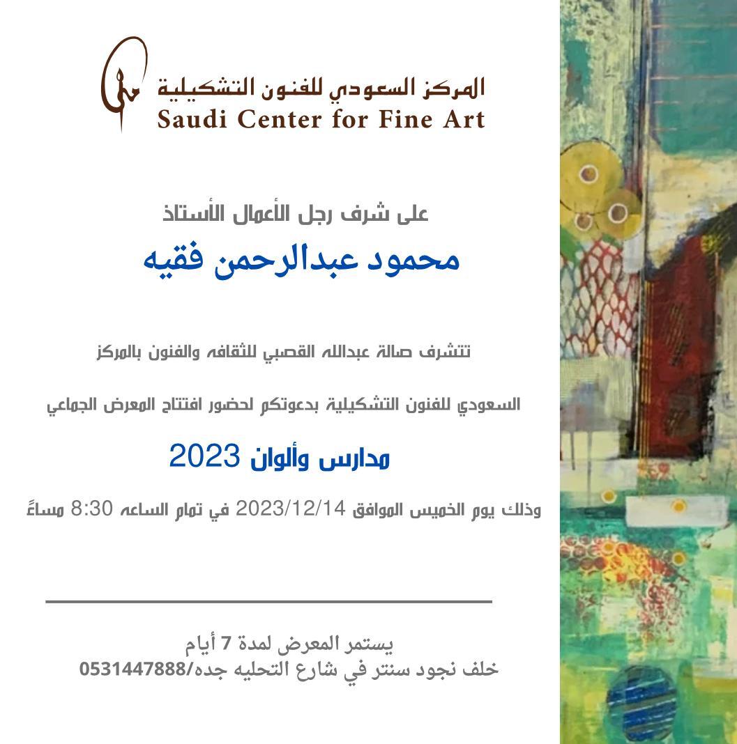 يقيم المركز السعودي للفنون التشكيلية المعرض الجماعي مدارس وألوان 2023برعاية رجل الأعمال الأستاذ محمود عبد الرحمن فقيه والذي يقام سنوياً في صالة عبد الله