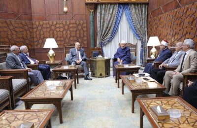 من جانبهم، عبَّر الدكتور عمرو عزت، والدكتور مشهور الرفاعي، عن سعادتهم بلقاء شيخ الأزهر، وتقديرهم لما يقوم به فضيلته والأزهر الشريف من دور مهم في دعم قضايا الأمتين العربية والإسلامية، خاصة فيما يتعلق باحتضان الأزهر للطلاب الوافدين من حول العالم، وتوفير كل سبل الراحة والدعم اللازم لتحصيل العلوم والمعرفة والعودة لبلادهم لينشروا الفكر الأزهري الوسطي ويصبحوا سفراءَ للأزهر.