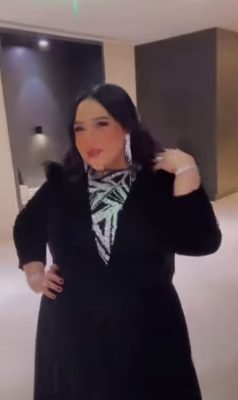 وشاركت النجمة المصرية متابعيها على “إنستغرام” بمقطع فيديو عفوي ظهرت فيه بفستان أسود من المخمل ذي تصميم محتشم، جاء ضيقاً من الأعلى ومتسعاً عند الخصر، مع حركة أنيقة بالترتر الأبيض على شكل V تمتد من الرقبة إلى الخصر، ولاحظ عدد كبير من متابعيها أنها فقدت بعضاً من وزنها الزائد وبدت أنحف من السابق.