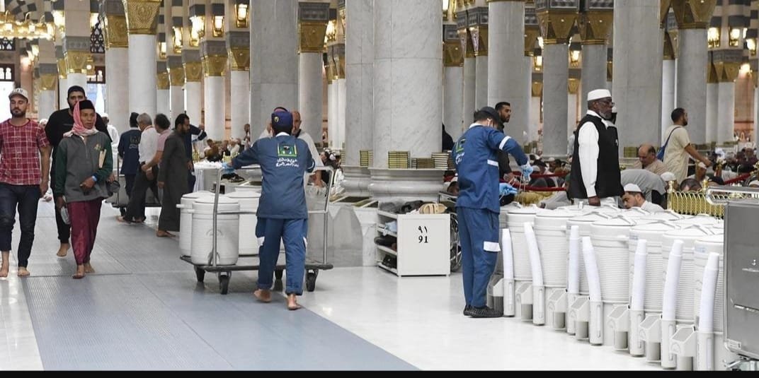 برنامجٌ مكثف لنقل وتخزين وتعبئة مياه زمزم بالمسجد النبوي