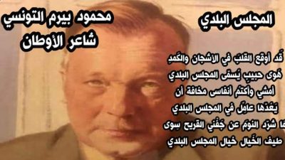 بالاضافة الى هذا بقصيدته عن المجلس البلدي وفيها انتقد المجلس البلدي في مدينة الاسكندرية في فترة الحكم الملكي والاستعمار الانقليزي الذي اثقل كاهله وكاهل المصريين بكثرة الاتاوات والضرائب وعاقبه بالحجر على بيته وهي قصيدة ساخرة سبّبت له متاعب جمة ونفيا الى أرض اجداده عقابا له وهي القصيدة التي حوّلت مجرى حياته وكانت سببا مباشرا في تحوّله الى الادب والصحافة ونيل الشهرة..وفي الفترة التي قضّاها بيرم التونسي في تونس كان له نشاط حثيث واتصالات عديدة بأدبائها الكبار وخاصة جماعةتحت السور وكان له الحضور المشرّف والمشرق رغم ما لقيه من مضايقات من السلط الاستعمارية الفرنسية..ولئن وجد محمود بيرم التونسي في اخر حياته الرعاية والعناية في مصرالتي ولد فيها ونشأ ونظمت له الاحتفالات بمناسبة ذكرى وفاته إلا أنّ هذا الشاعر الذي أحبّ تونس واقام فيها لم يزل الى الان لا يلقى الاحتفاء به من ابناء بلادنا ولم تفكّر وزارة الشؤون الثقافية ومؤسساتها وجمعياتنا في تنظيم تظاهرة كبرى للتعريف به وابراز أعماله وفضله ..
