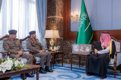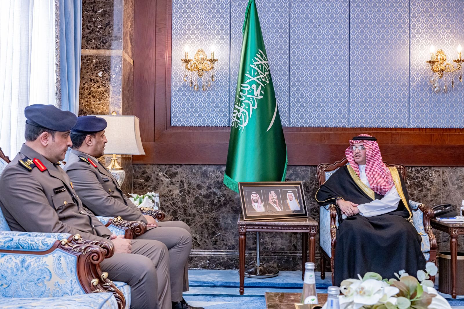 ورحب سموّه في بداية الاستقبال باللواء الموزان، وهنأ سموّه اللواء الموزان بمناسبة تعيينه، مستمعاً لشرح عن أعمال ومنجزات الدفاع المدني والمتابعة الميدانية لإجراءات السلامة، مشيدًا بالجهود الكبيرة التي يبذلها رجال الدفاع المدني لحفظ الأرواح والممتلكات، وما يقدمونه من عمل وخدمات إنسانية متميزة.