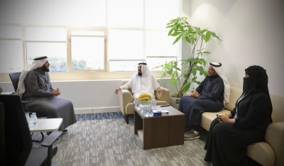 والتقى الدكتور حسين العنزي خلال زيارته للجمعية بالأستاذ إبراهيم الغرير