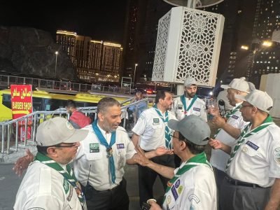 جاء ذلك خلال جولة قام بها اليوم مع المُدير العام للتعليم بمنطقة مكة المكرمة، المشرف على الخدمات الكشفية التي تقدم للمعتمرين بالمسجد الحرام الأستاذ عبدالله بن سعد الغنام، شملت مركز بادر الكشفي للأعمال التطوعية، وكشافة وزارة التعليم المتطوعين مع الهيئة العامة لشؤون الحرمين، وشهد الجهود المبذولة التي تقوم بها كشافة التعليم في مجال دفع العربات، و تنظيم المسارات من والى صحن المطاف، كما التقى فتيات كشافة التعليم في التطوع الصحي، والجوالة المشاركين في التنظيم بمنطقة المسعى والمساندين للأمن العام.