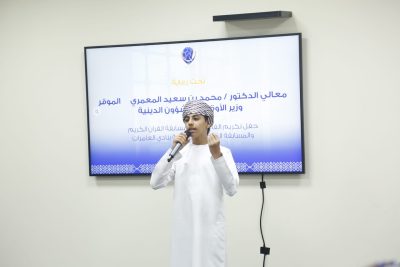و قام راعي المناسبة بتكريم الفائزين في مسابقة حفظ القرآن الكريم والفائزين في المسابقة الدينية، وتضمن الحفل عرضا مرئيا لمناشط النادي خلال الشهر الفضيل وفقرة إنشادية وكلمة اللجنة الثقافية ألقاها الدكتور حبيب بن مرهون الهادي رئيس اللجنة، أكد خلالها على ان نادي العامرات يبني شراكة مجتمعية مع مؤسسات المجتمع المدني لمزيد من التعاون وتحقيق الأهداف المرجوّة،