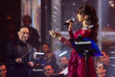 ‎مستمتعاً بالاداء الكبير الذي قدمته الفنانة آمال ماهر على خشبة المسرح ، وقد تميز الحفل بوجود الموسيقار الكبير وليد فايد الذي قاد الأوركسترا الموسيقية المكونة من 100 عازف ما أضفى على الأمسية لمسة فنية مختلفة .
