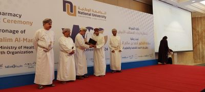 مشيرا إلى أن كلية الصيدلة قد عززت من قائمة ارتباطها التدريبي داخل وخارج سلطنة عُمان ، وأعرب عن شكره لجميع الجهات الراعية وذات الصلة الأخرى من القطاعين الحكومي والخاص على الدعم المستمر لبرامج الصيدلة.