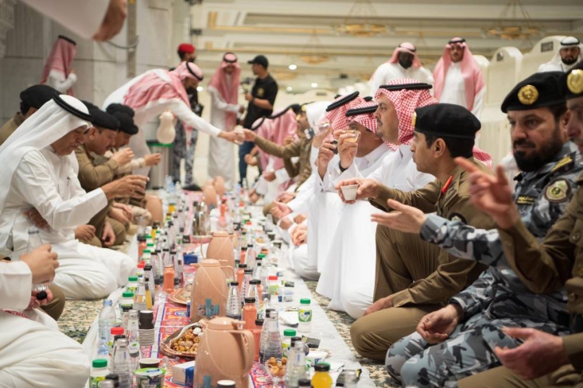 نائب أمير مكة المكرمة يشارك رجال الأمن والجهات المشاركة في خدمة ضيوف الرحمن طعام الإفطار في المسجد الحرام