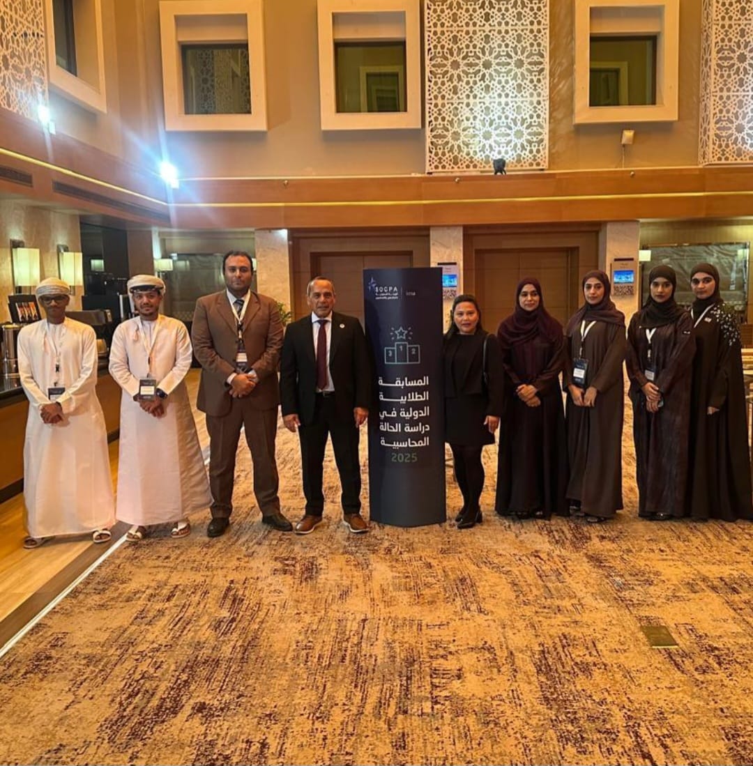 و تهدف هذه المسابقة إلى تعزيز مهارات التحليل الاستراتيجي والتفكير النقدي لدى الطلاب من خلال تحليل حالات دراسية واقعية في مجال المحاسبة الإدارية والمالية. حيث أُطلقت النسخة الاولى من المسابقة في دولة الإمارات العربية المتحدة عام 2012، ثم توسعت لتشمل دولًا أخرى في المنطقة مثل المملكة العربية السعودية، مصر، الأردن، وقطر وشهدت المسابقة نموًا ملحوظًا في عدد المشاركين على و في نسخة عام 2025 من المسابقة ” IMA Middle East Student Case” Competition، شارك 432 طالبًا موزعين على 106 فرق من 9 دول من منطقة الشرق الأوسط وأفريقيا. و و بعد التصفيات تأهلت اربع فرق الى النهائي ..حيث جاء الفريق الطلابي الممثل لجامعة التقنية و العلوم التطبيقية في المركز الثاني و حول هذا يقول الدكتور هيثم رمضان شحاتة المشرف على الفريق : شاركت للمرة الأولى في هذه المسابقة مع فريق جامعة دمنهور من جمهورية مصر العربية ووفقنا الله إلى الحصول على المركز الاول، وبعد انتقالي إلى جامعة التقنية والعلوم التطبيقية بإبراء في بداية هذا العام الدراسي، حرصت على نقل التجربة إلى الجامعة، خاصة بعد ما لمسته من دعم مستمر من إدارة الفرع لتشجيع التميز والمشاركة الفعالة في المنافسات الدولية والمسابقات العلمية من خلال التنظيم أو المشاركة، وقمت باختيار والإشراف على أفراد الفريق ووفقنا الله سبحانه وتعالى من تحقيق المركز الثاني.و يضيف شحاته : إن دفعي المستمر إلى للطلاب نحو المشاركة في مثل هذه المسابقات ينبع من إيماني بأن المشاركات الدولية تثري تجربتهم التعليمية، وتكسبهم مهارات تحليلية وتطبيقية تؤهلهم للريادة في بيئات العمل المستقبلية.، كما تؤهلهم ليكونوا سفراء للمعرفة والريادة في بيئات العمل المستقبلية و تقول الدكتورة حبيبة المغيرية رئيس قسم ادراة الاعمال بفرع الجامعة بابراء : بداية أبارك لطلابي من قسم إدارة الأعمال شعبة المحاسبة والمشرف الدكتور هيثم رمضان على الفوز بالمركز الثاني في المسابقة الطلابية الدولية لدراسة الحالة المحاسبية لعام 2025. الجدير بالذكر بأن المسابقة لم تكن سهله ،بل هناك تحديات، ولكن بسبب التشجيع والتدريب المستمر من قبل المشرف والمتابعة والتحفيز من إدارة الجامعة و القسم واجتهاد الفريق، تأهل وفاز على أكثر من مائة فريق من مختلف جامعات دول الشرق الأوسط وشمال أفريقيا. هذا الفوز سوف يضيف الكثير للطلاب من ناحية الخوض في تجارب أخرى وتحديات أخرى والاستفادة من خبرتهم لتعزيز المهارات والمعارف في مجال تخصصهم ويكون هذا الفوز بمثابة إلهام لبقية طلاب الجامعة لتشجيعهم للخوض في نفس التجربة ومسابقات مشابهة