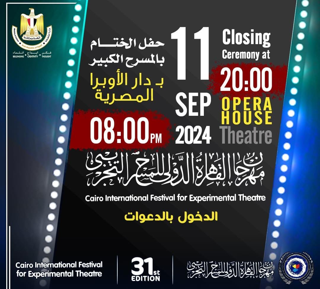 بعد أسابيع من العروض الرائعه مهرجان القاهرة الدولي للمسرح التجريبي يختتم فعالياته اليوم