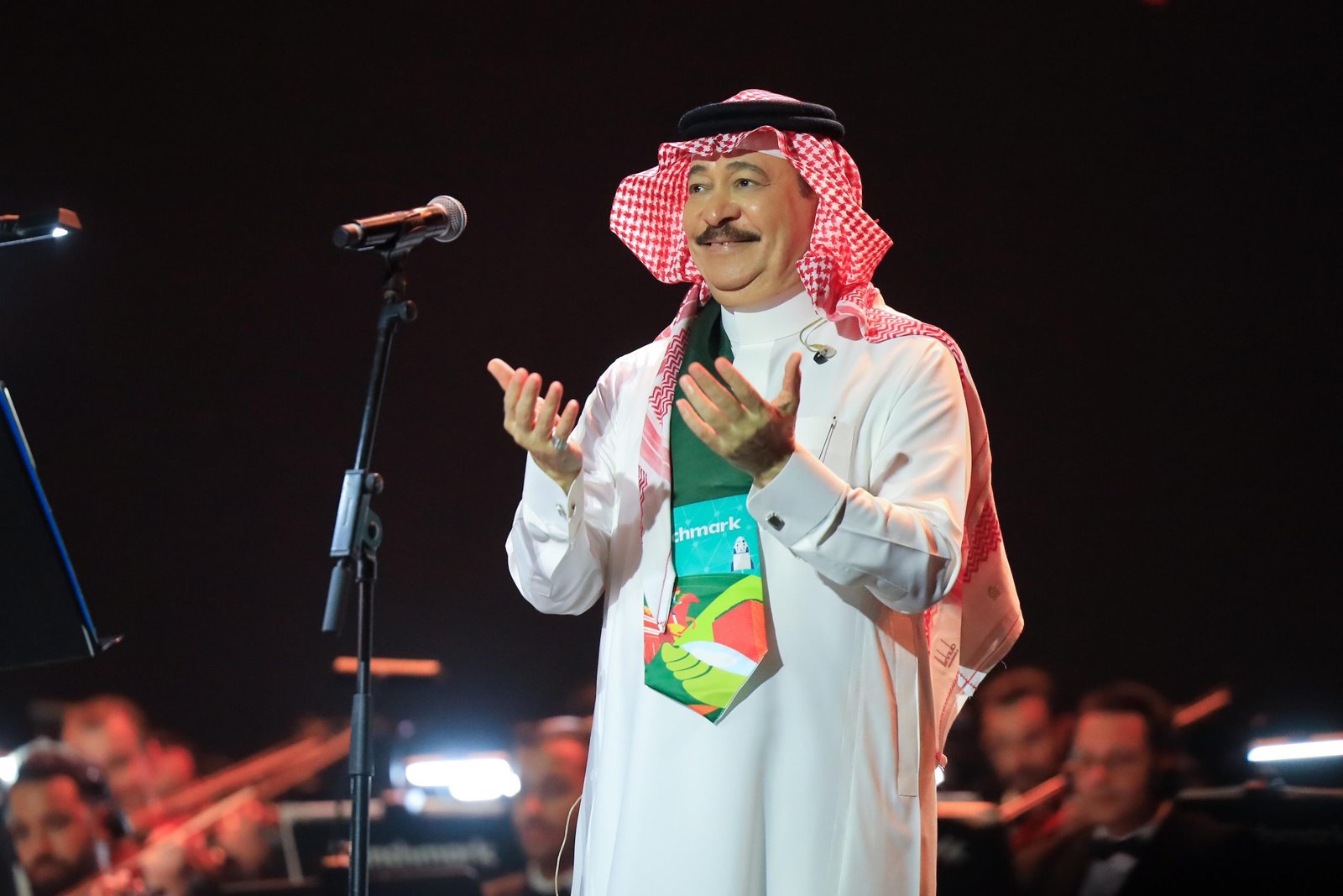اكمل الفنان خالد عبدالرحمن وصلته بمجموعة من اشهر اغانية، ” الحب الكبير، انتظرته، أنادي، خدي نظر، ليتك لعيني قريبة، واختتم وصلته بالأغنية الوطنية “مسلم عربي سعودي قائد الأمة”.