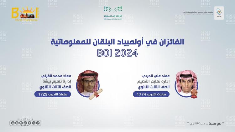 وحصل الطالب عماد علي الحربي من تعليم القصيم، على الميدالية البرونزية، فيما نال الطالب معاذ محمد القرني من تعليم بيشة، شهادة تقدير.