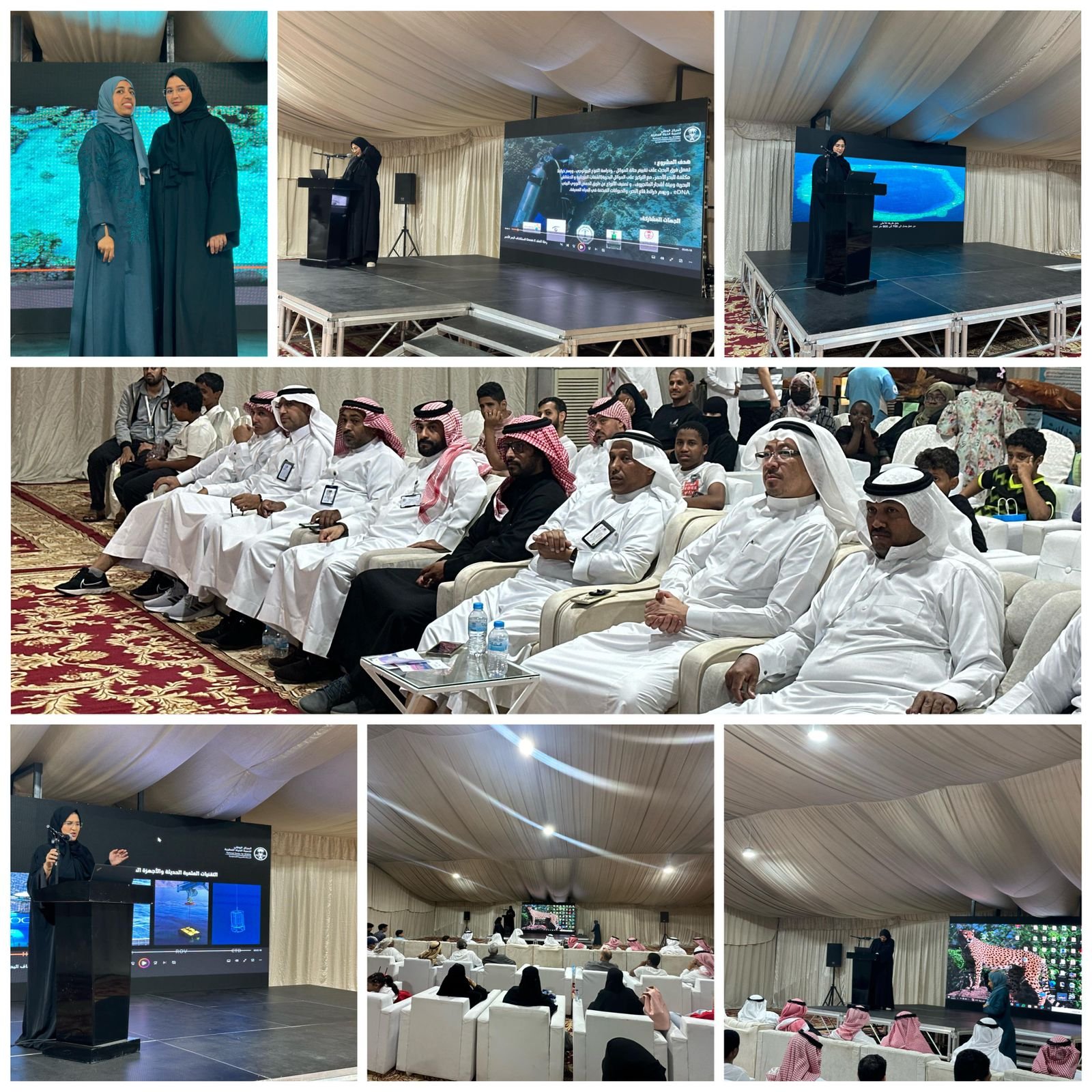 وقدمت الورشة الثانية الأستاذة/ وجدان الخالدي وكانت بعنوان (اكتشاف أكبر ثروة في البحر الأحمر عام2023)” الثقوب الزرقاء في البحر الأحمر”