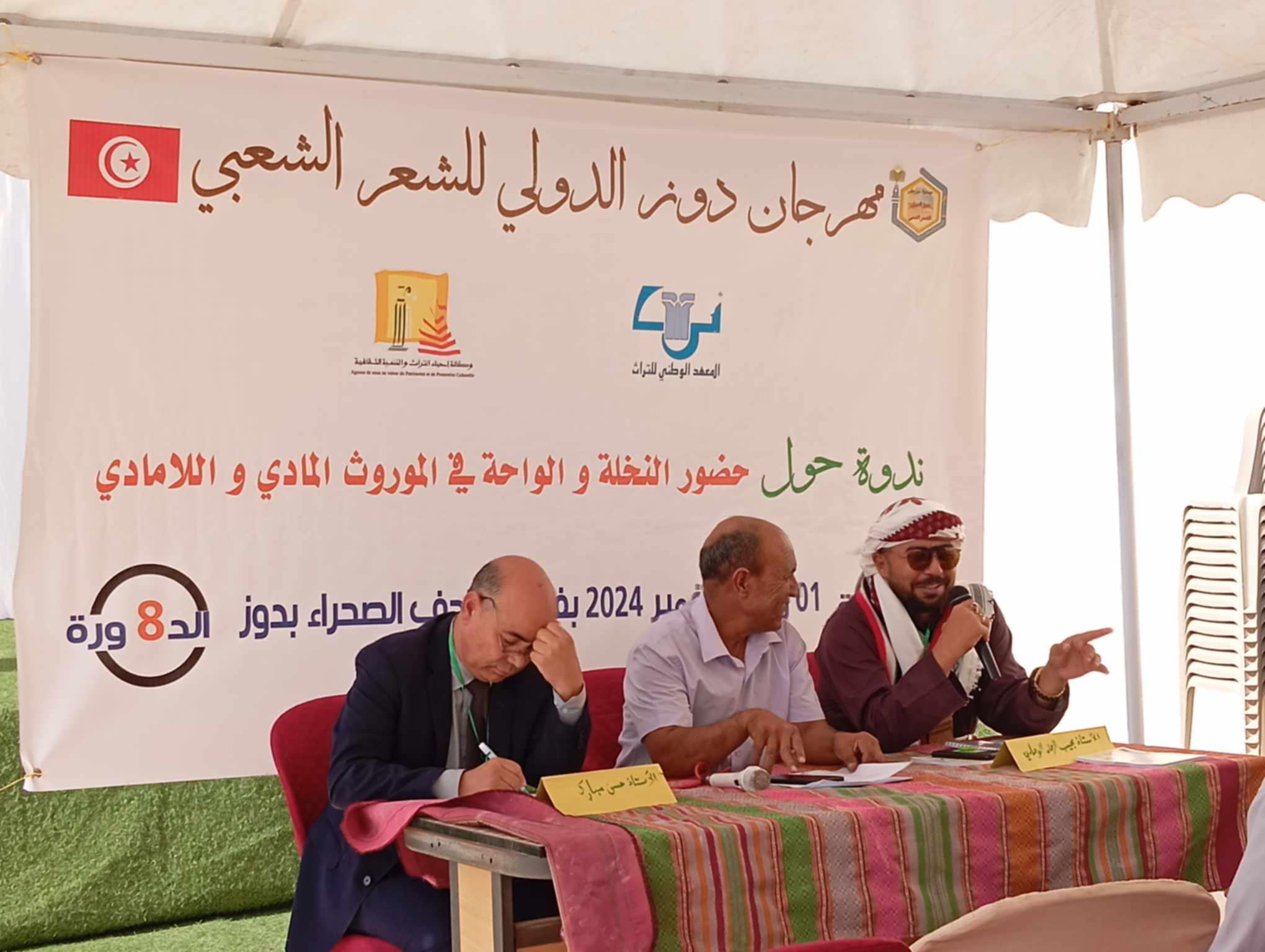 في إطار الندوة الفكرية عن النخلة والواحة في التراث المادي وغير المادي والتي عقدت مؤخرا في مدينة دوز من ولاية قبلي التونسية في مهرجان دوز للشعر الشعبي في دورته الثامنة قدّم الباحث اليمن مجيب الرحمن الوصابي مداخلة قيمة حمت عنوان ” النخلة والأشجار المقدسة في اليمن في جلسة اليوم الأول التي ترأسها الدكتور حسن مبارك شبه الوصابي في ورقته العلمية النخلة بالإنسان إذا قُطعت رأسها تموت ومثله عمرا وكتب في ملخصه المتميز ” تحاط النخلة في الوجدان العربي الجمْعي بهالة من القداسة والتعظيم، وصلت إلى حدّ العبادة، فقد ذكرت المصادر عبادة أهل نجران لنخلة عظيمة قبل دخول النصرانية والإسلام، وبقيت بعض أشكال الرواسب الثقافية لتقديس النخل إلى يومنا هذا، لتسعى الدراسة من خلال منهج النقد الثقافي الأسطوري إلى رصد تلك الرواسب، و ظاهرة تقديس اليمنيين لبعض الأشجار كاللبان والمُرّ، ودراسة البِنى الأسطورية السردية وتفكيكها بوصفها مدخلًا للمبحث الثاني الذي يخصص للنخلة في التراث اليمني والعربي بين السرديات الأسطورية والنقوش وفي المعتقدات والرواسب الثقافية المرتبطة بشجرة النخيل؛ التي جعلها العرب مؤنسنة تبكي وتحزن وتعشق، لتكون النخلة وحضورها في الأمثال الشعبية اليمنية عنوانّا للمبحث الأخير من الدراسة التي قمنا برصد بعض الأمثال الشعبية المتعلقة بالنخلة وتوابعها وشرحها، وهي تتشابه مع كثير من الأمثال العربية الأخرى التي عكست مزاجًا عربيًّا عامًّا يعطي للنخلة مكانةً عظيمة في حياته وفي مماته فكانت وطنًا لكلّ عربي.