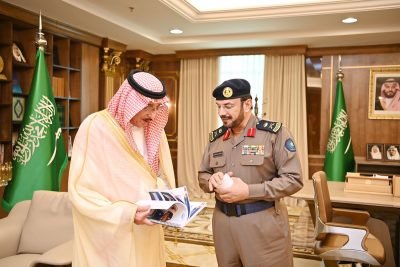 محمد بن ناصر امير جازن يتسلم تقرير الدفاع المدني عن الحالة المطرية