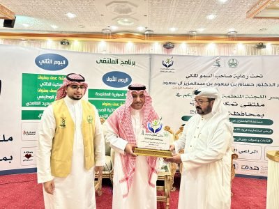 كما وجه شكره لجميع الجهات المشاركة والداعمة واللجان العاملة ولكل من أسهم في نجاح الملتقى وظهوره بهذا المظهر الرائع.