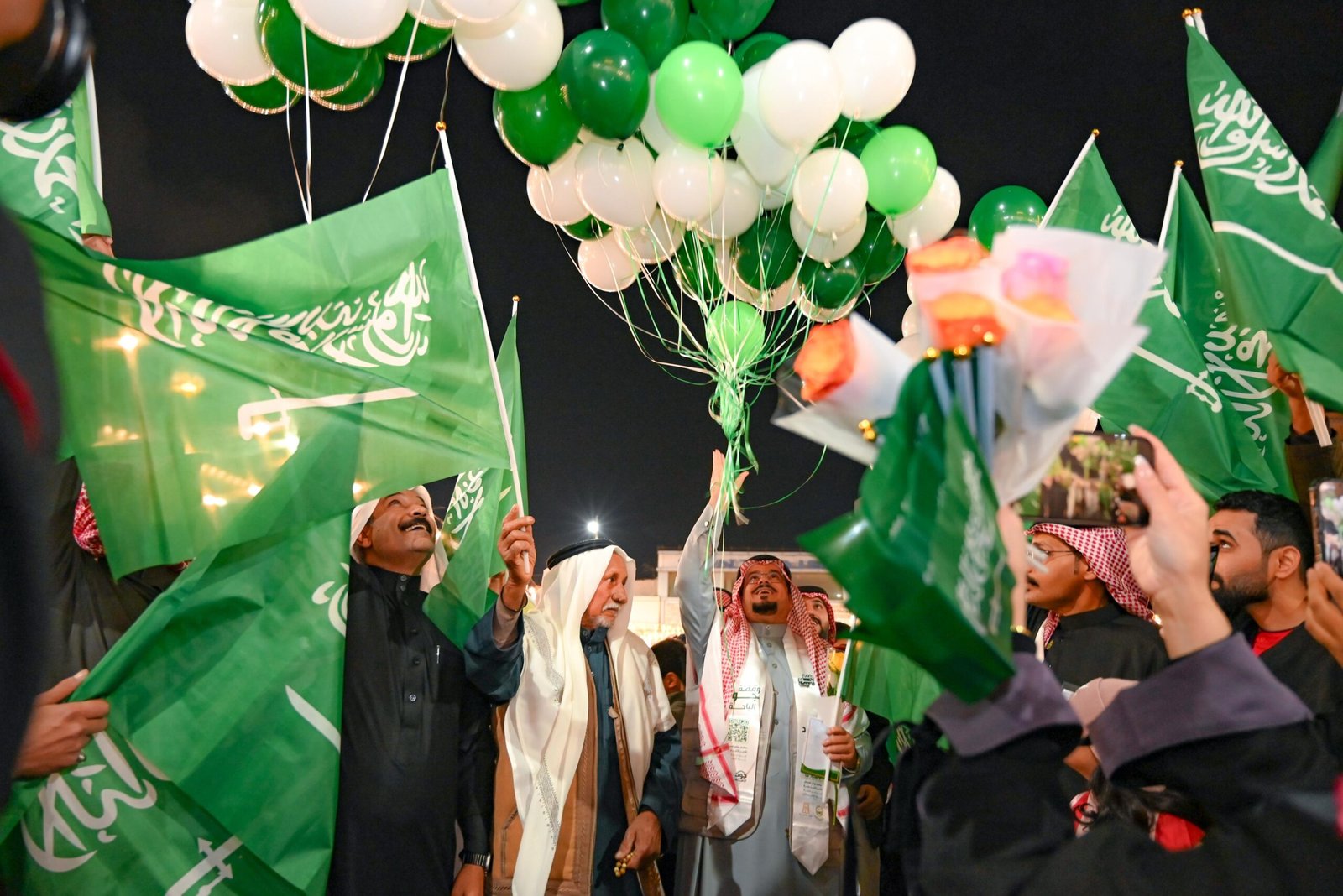هيئة الهلال الأحمر السعودي بالباحة تشارك في احتفاءً بيوم العلم بالسوق الرمضاني بالباحة