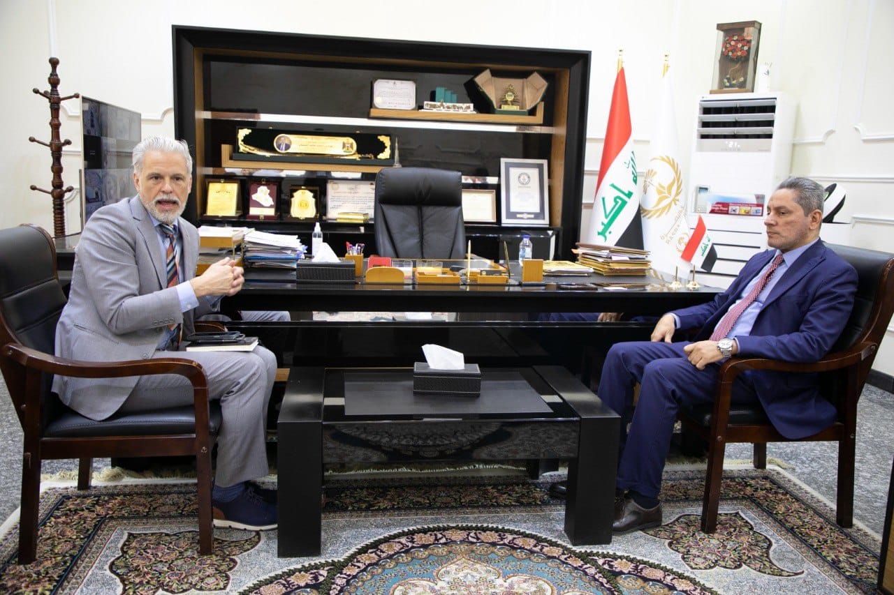 التقى محافظ البصرة “وكالة ” المهندس “محمد طاهر التميمي” نائب ممثل منظمة الأمم المتحدة للطفولة (اليونيسف) في العراق ” كين ليكنز” والوفد المرافق له في مكتبه الرسمي بمقر الحكومة المحلية.