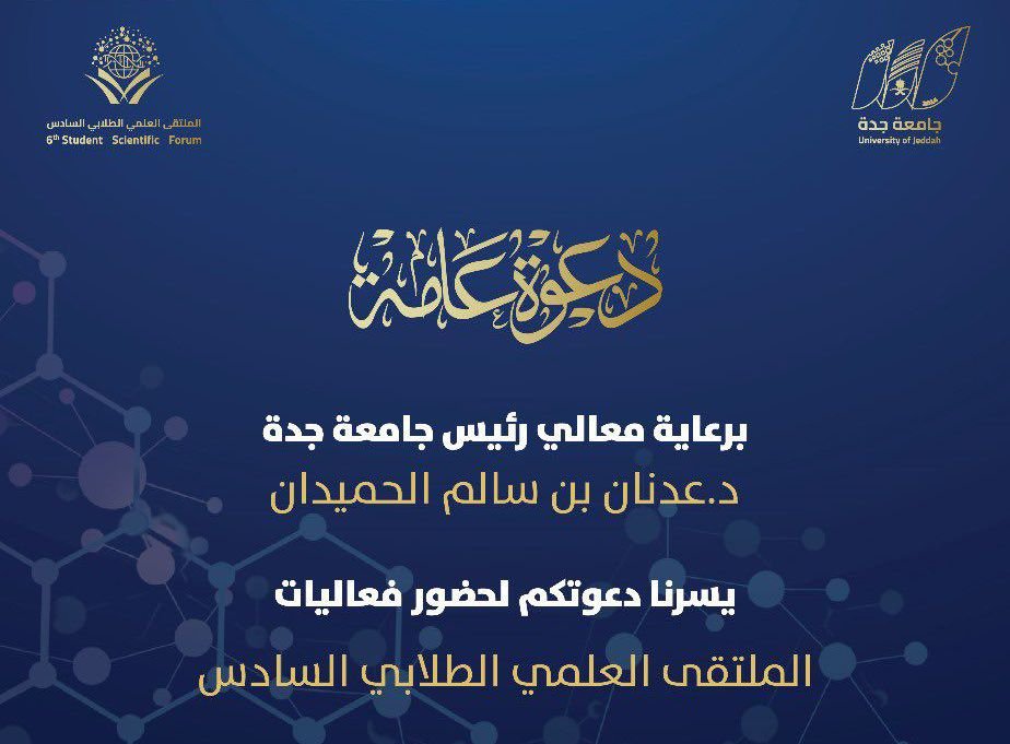 عبدالله الينبعاوي برعاية معالي رئيس جامعة جدة الدكتور عدنان الحميدان تبدأ يوم الأحد الموافق ٥ مايو فعاليات الملتقى العلمي الطلابيّ…