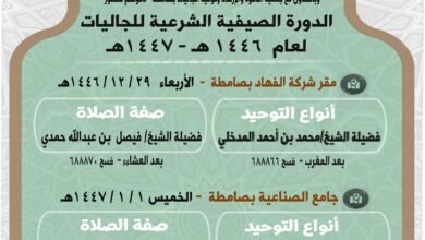 المركز الاعلامى ينظم فرع وزارة الشؤون الإسلامية والدعوة والإرشاد بالتعاون مع جمعية الدعوة والإرشاد وتوعية الجاليات بمحافظة صامطة دورات صيفية…