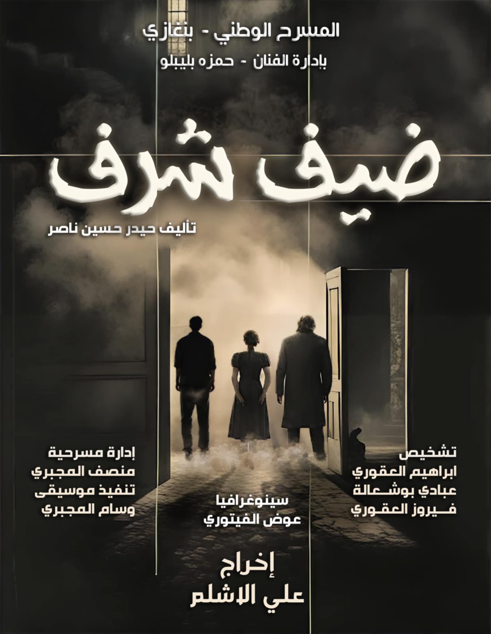 تم انتهاء من إنجاز العمل المسرحى الاجتماعي للمخرج على الأشلم بعنوان ضيف شرف ، هذا العمل الذى يحاكى الواقع الاجتماعي ، فى كافة الشعوب نتيجة الحروب ، العمل من تأليف حيدر حسين ناصر وإخراج على الأشلم ، إدارة مسرحية منصف المجبري ، تنفيذ موسيقي وسام المجبري ، ضيف شرف من تشخيص ابراهيم العقورى ، عبادى بوشعالة ، فيروز العقورى ، سينوغرافيا عوض الفيتورى