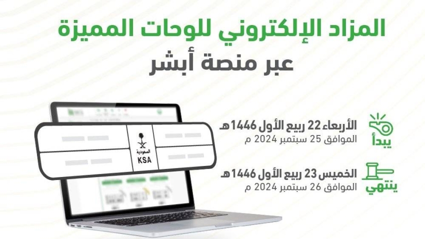 طرح المزاد الإلكتروني للوحات المميزة عبر “أبشر” اليوم