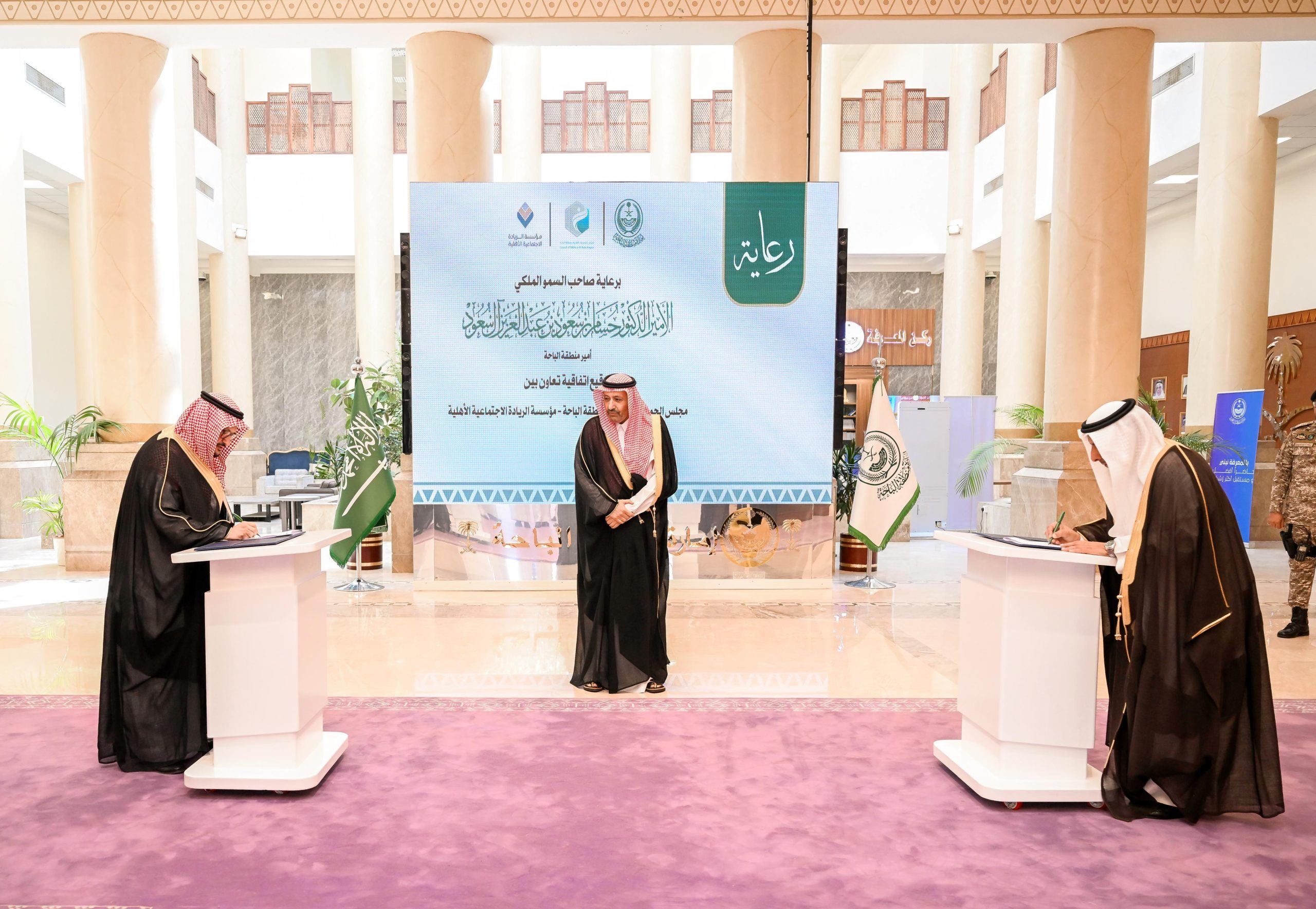 أمير الباحة يشهد توقيع اتفاقية تعاون بين مجلس الجمعيات الأهلية بالمنطقة ومؤسسة الريادة الاجتماعية
