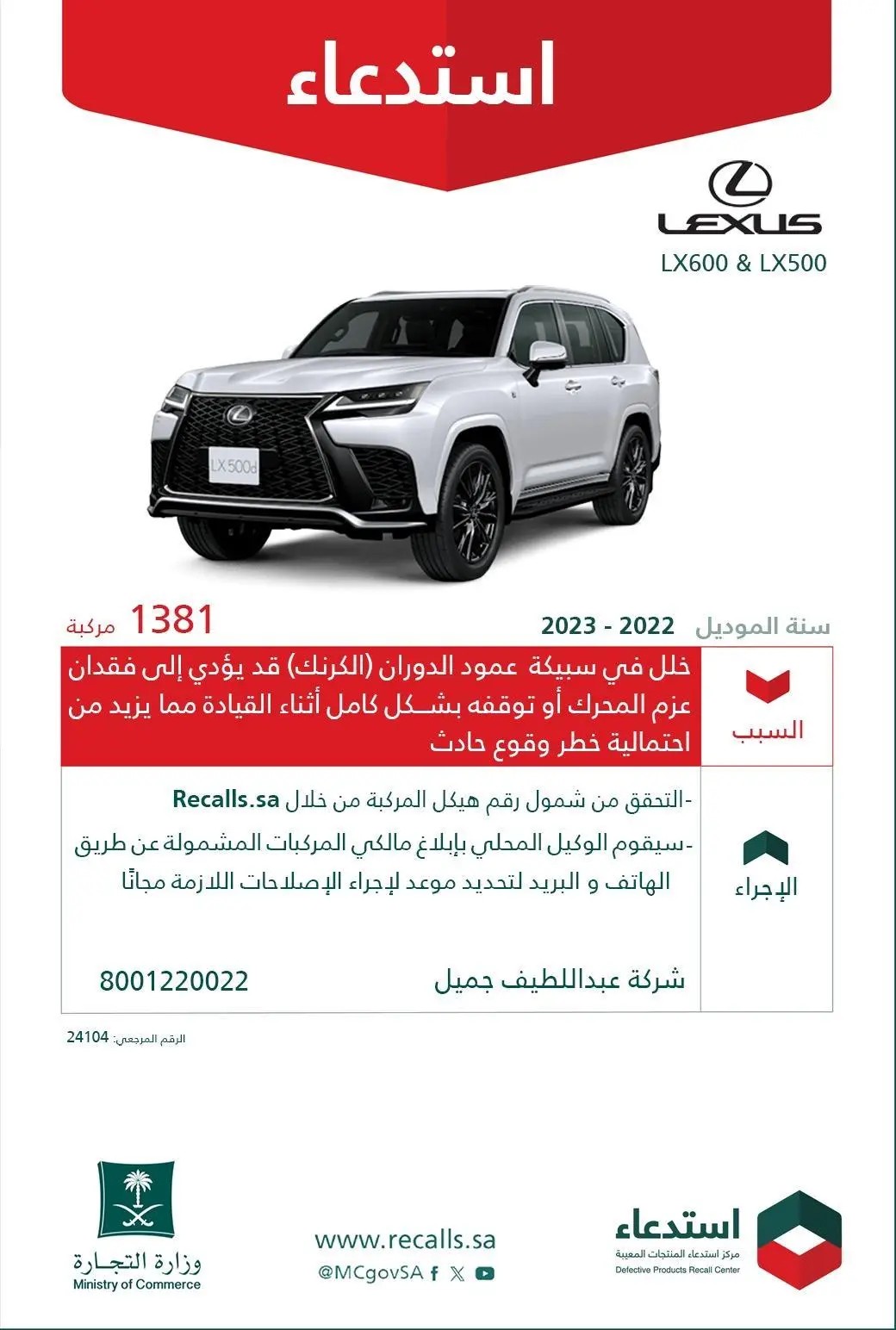 عائشة محمد أعلنت وزارة التجارة عن استدعاء 12,706 مركبات (تويوتا – لكزس) لوجود خلل في سبيكة عمود الدوران (الكرنك) قد…
