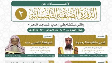 ماهر عبدالوهاب أعلنت رئاسة الشؤون الدينية بالمسجد الحرام والمسجد النبوي عن إقامة الدورة الصيفية التأصيلية الثانية لعام 1447هـ، والتي تُعقد…