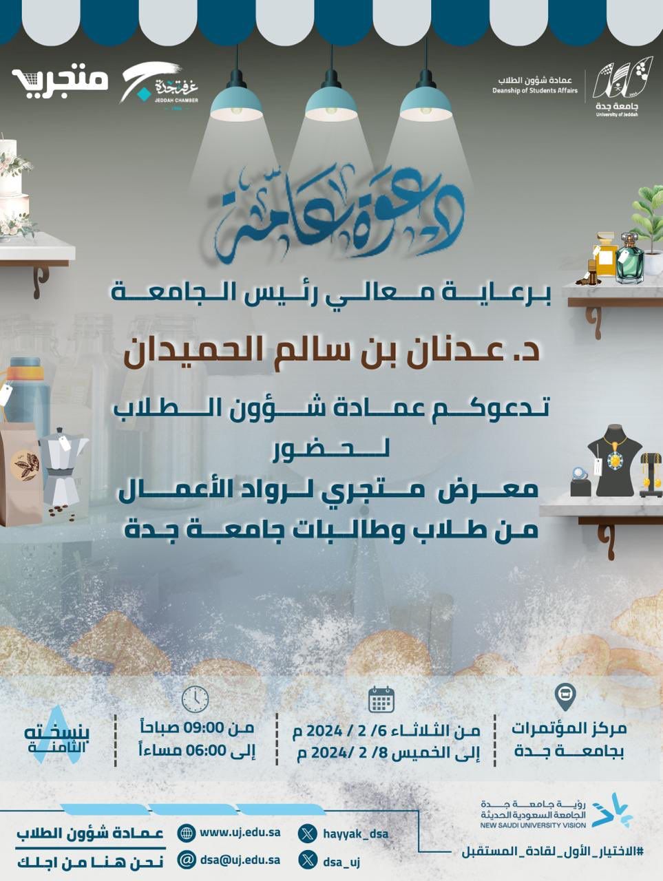 عبدالله الينبعاوي برعاية معالي رئيس جامعة جدة الدكتور عدنان الحميدان ينطلق معرض متجري في نسخته الثامنة وذلك بإشراف عمادة شؤون…