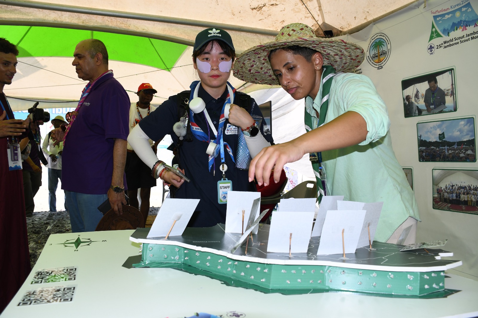 تعرض جمعية الكشافة العربية السعودية ضمن مشاركتها بالمخيم الكشفي العالمي الخامس والعشرون المقام حالياً في كوريا الجنوبية تحت شعار ” أرسم حلمك ” وبمشاركة أكثر من 43 ألف شابا وشابة يمثلون 158 دولة حول العالم؛ عرضاً يمكن الزائر للجناح السعودي في قرية التنمية العالمية (GDV) عبر الباركود من التعرف على مناطق المملكة والمشاريع الحاضرة والمستقبلية في كل منطقة.