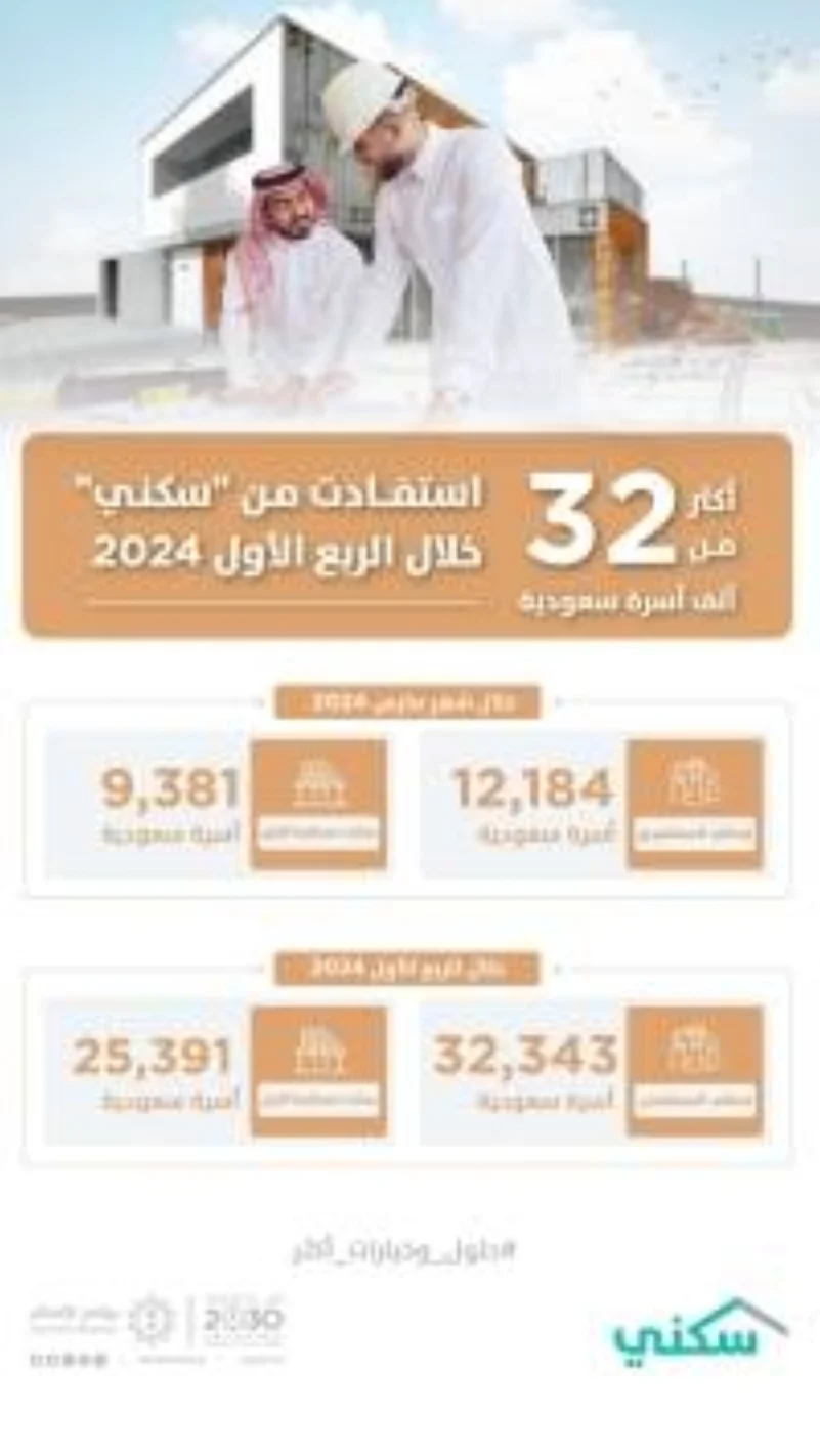 32 ألف أسرة استفادت من “سكني” خلال الربع الأول من 2024