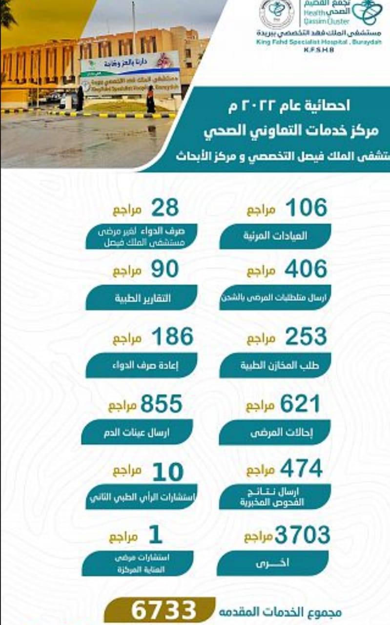 مركز التعاون الصحي بتخصصي بريدة يخدم أكثر من 6700 مريض عام 2022