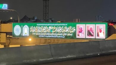 عرض اسم مسابقة الملك عبدالعزيز الدولية للقرآن الكريم وصور القيادة تزامنًا مع انطلاق دورتها الـ45