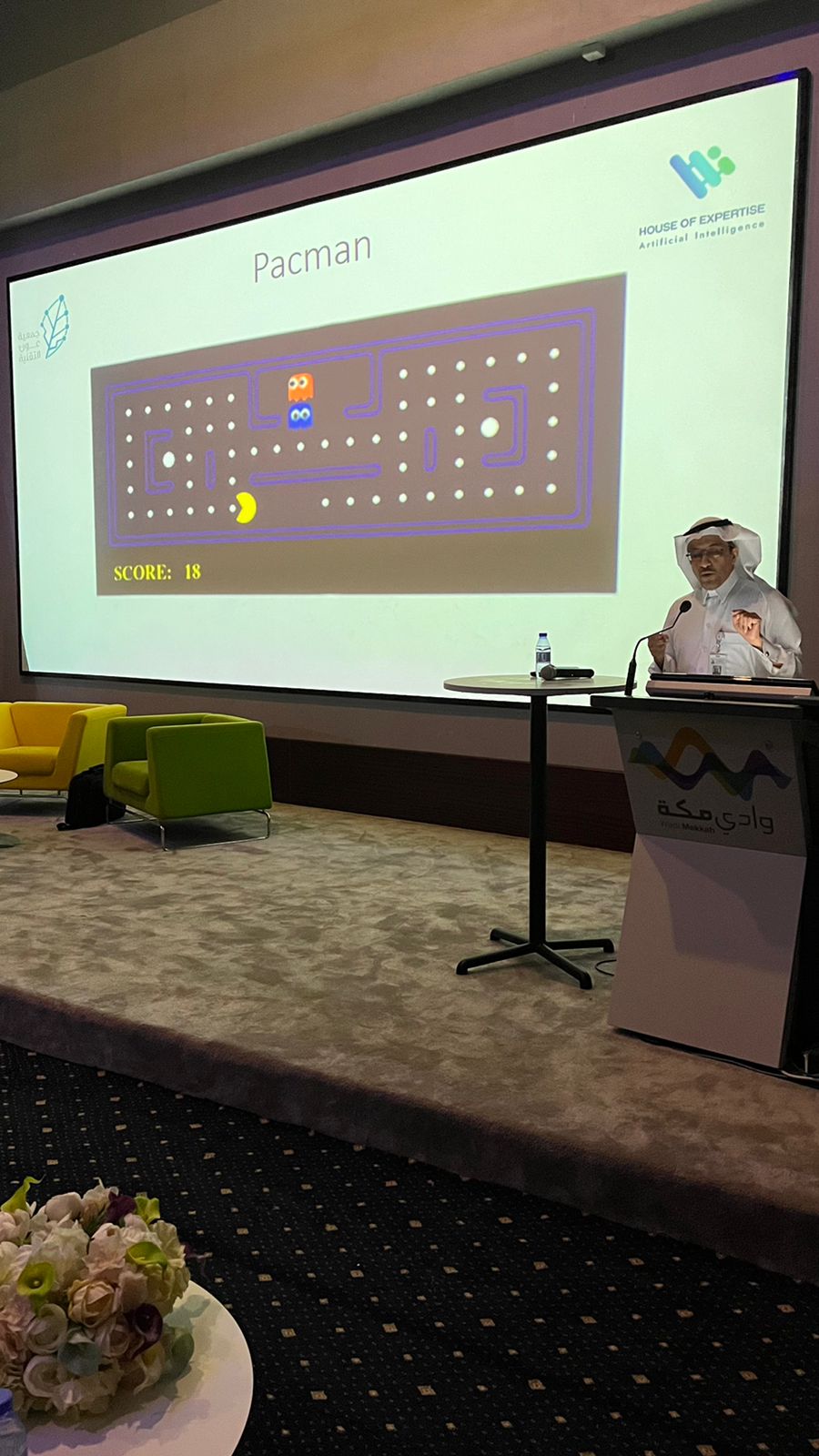 وضمن إجابته كيفية التنفيذ ، والمشاريع التي نفذت من قبل المكتب الاستشاري للذكاء الاصطناعي بجامعة الملك عبدالعزيز ، والمستقبل وما يحمله من تطورات في هذا المجال .