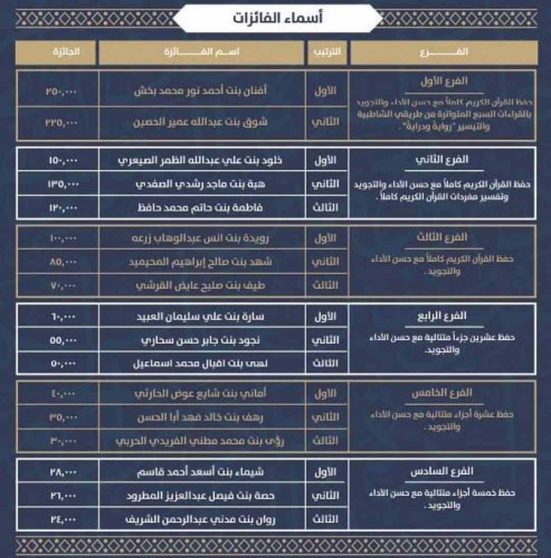 وزارة الشؤون الإسلامية تقيم حفل تكريم الفائزات بجائزة الملك سلمان لحفظ القرآن في دورتها الرابعة والعشرين